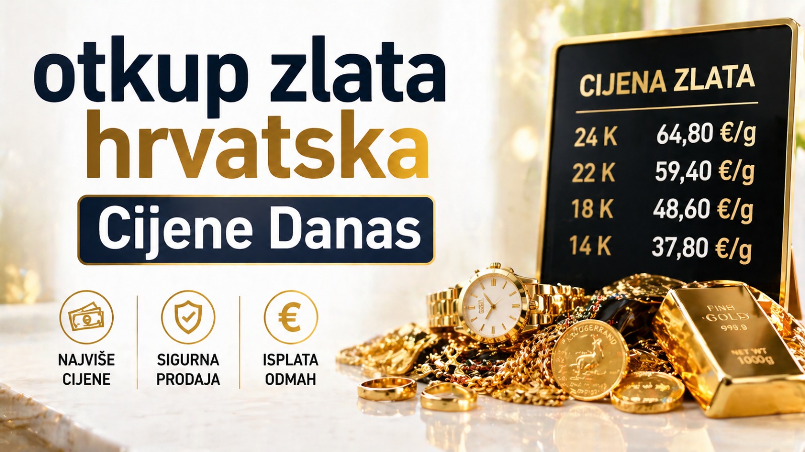 U ovom članku ćemo se fokusirati na aktualne cijene otkupa zlata u Hrvatskoj, faktore koji utječu na cijene, najbolja mjesta za otkup i nekoliko korisnih savjeta kako biste bili sigurni da ćete ostvariti najbolju moguću cijenu.